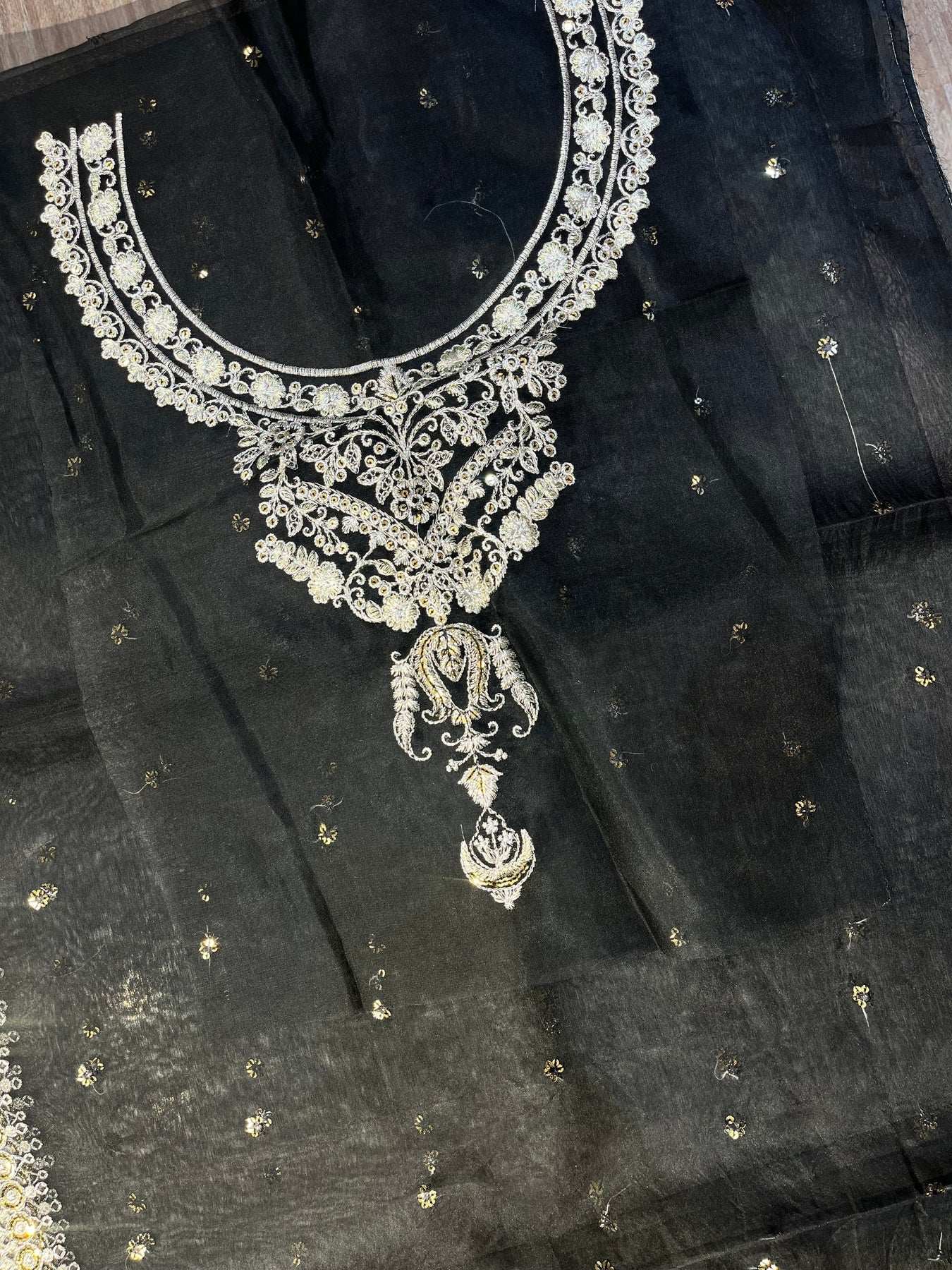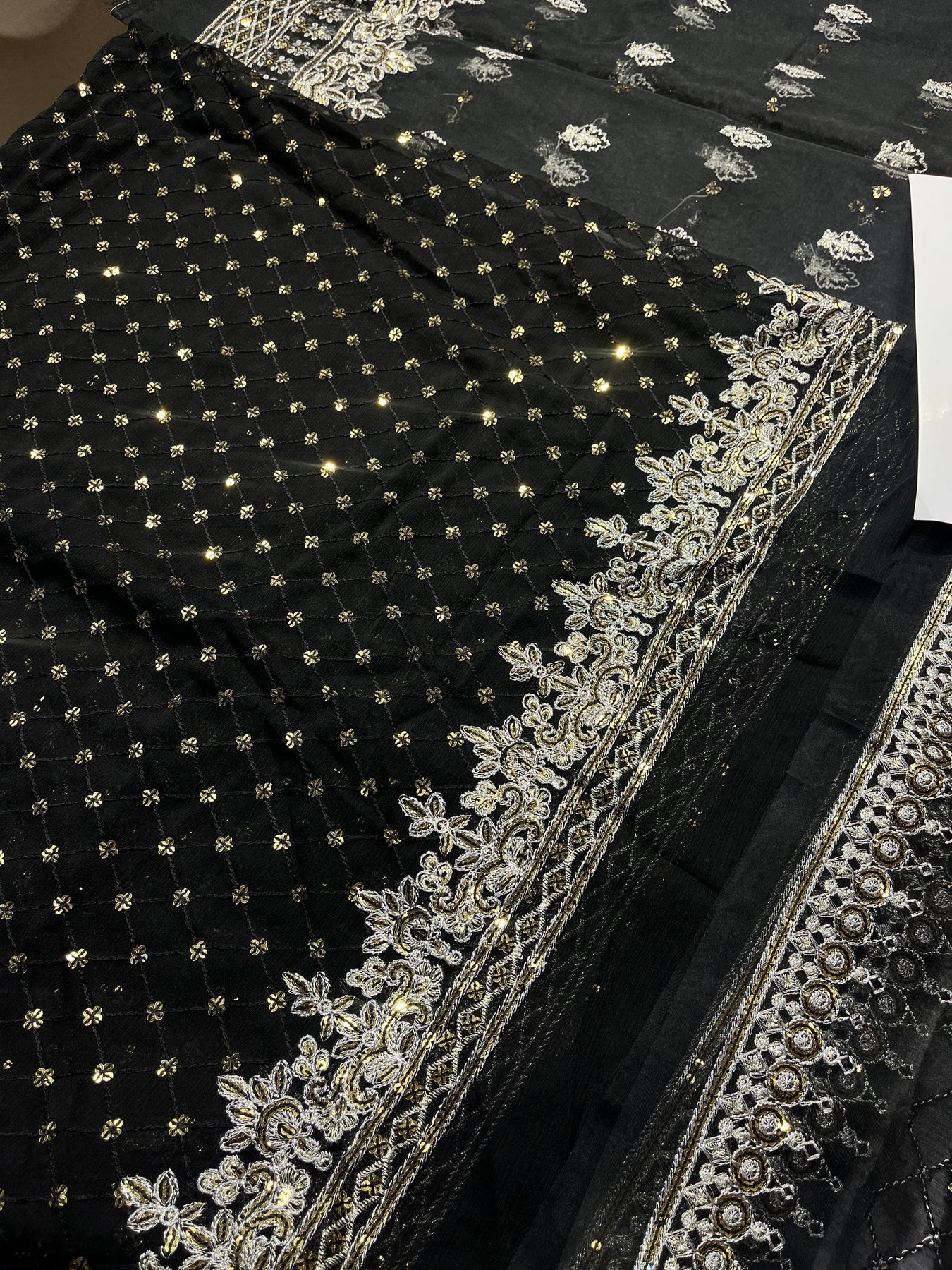 • 2.5 meters embroidered border for front & back chaak on chiffon
